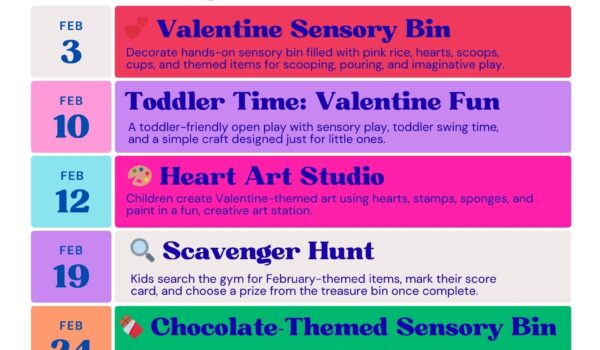February Programs & Events at We Rock the Spectrum Kids Gym Looking for kids activities this February? We Rock the Spectrum Kids Gym offers sensory-friendly events, school’s out camps, Parent’s Night Out, toddler classes, and preschool prep programs all month long. Our February calendar is filled with fun, themed activities designed for children of all abilities in a safe, inclusive, and engaging environment. 💕 Valentine’s Events for Kids Celebrate Valentine’s…